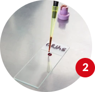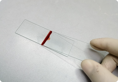 Se prepara una lámina delgada con la muestra de sangre para su observación bajo el microscopio.